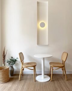 Selain itu Clumsis juga didesain dengan banyak bentukan dinamis, dari desain Bar, pemilihan loose furniture, maupun panel gypsum-nya untuk mengurangi sudutan tajam agar pengunjung cafe tidak perlu takut membawa anak yang masih kecil untuk bermain dan cafe ini juga menjadi cafe yang pet friendly.