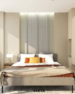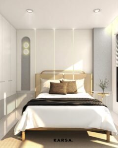 Design Interior L Residence ini mengusung konsep modern kontemporer dengan pendekatan desain yang bersih, terang, dan nyaman. Palet warna netral dipadukan dengan pencahayaan alami maksimal untuk menciptakan ruang yang terasa lapang dan tenang. Elemen built-in minimal, aksen lengkung yang lembut, serta furnitur berprofil sederhana menghadirkan keseimbangan antara fungsi dan estetika, menjadikan hunian ini relevan dan timeless untuk kehidupan urban.