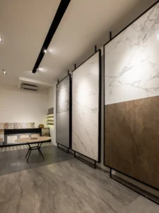 Karsa Studio kemudian dipercaya untuk mendesain showroom ini sebagai ruang eksplorasi material yang tidak hanya menampilkan produk, tetapi juga menghadirkan pengalaman ruang, memungkinkan pengunjung melihat, menyentuh, dan membayangkan langsung penerapan setiap material dalam konteks hunian yang fungsional dan estetis.